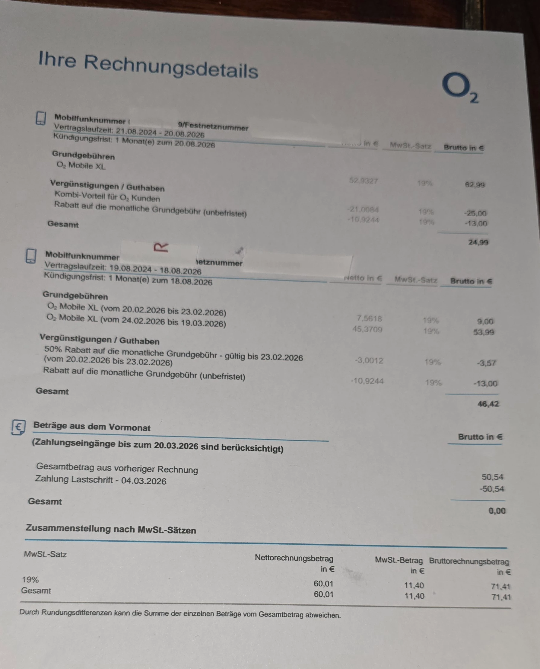 Mir wurde auch der Rabatt für die zweite Rufnummer auf der Rechnung gestrichen, obwohl die erste Nummer gekündigt wurde.