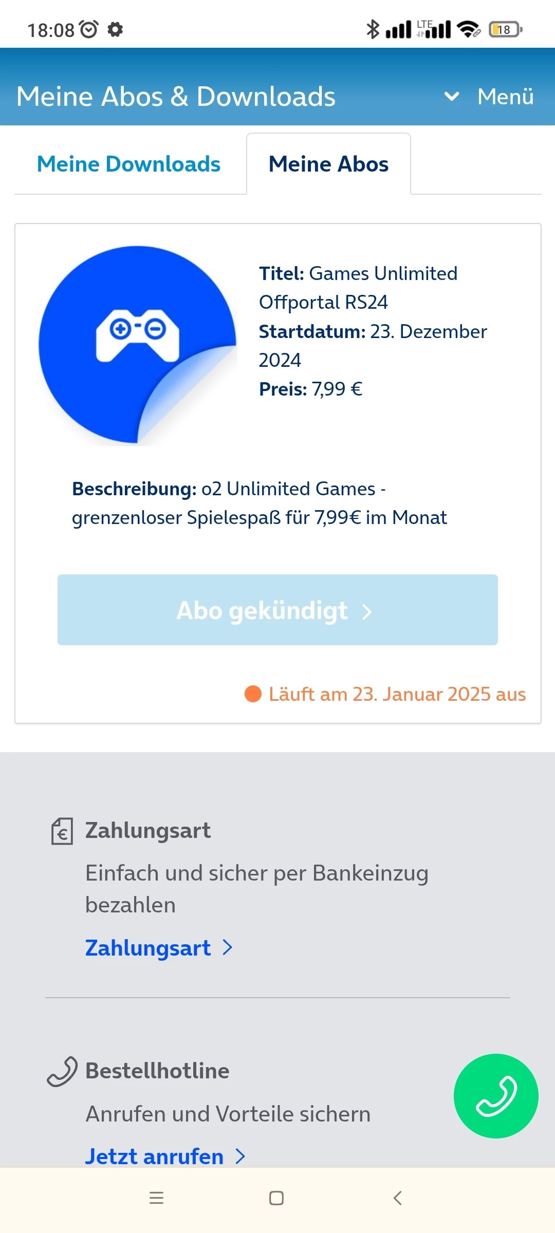 Das Abonnement für die Spiele wurde ausgestellt und am 23. Dezember sofort gekündigt. Es kostet 7,99. Warum muss ich im Januar 15,98 zahlen?