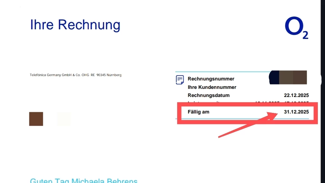 Die Fälligkeit findest du auf der Rechnung oben rechts