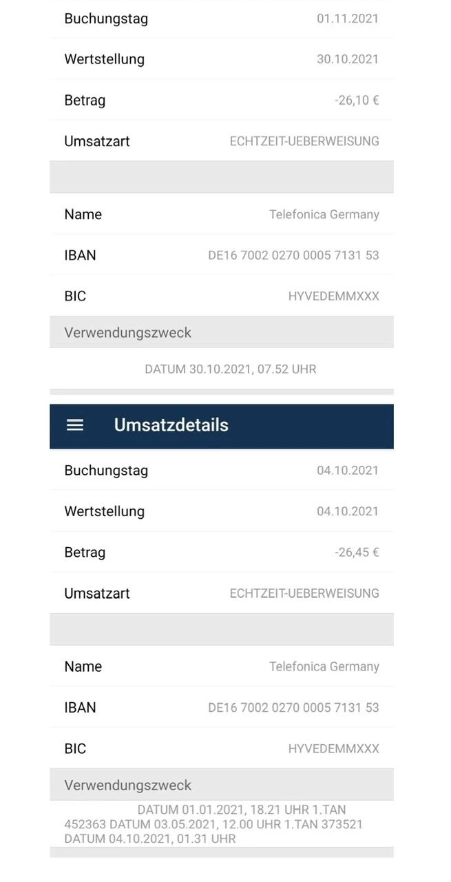Ich habe mal die Überweisungen unten angehängt.