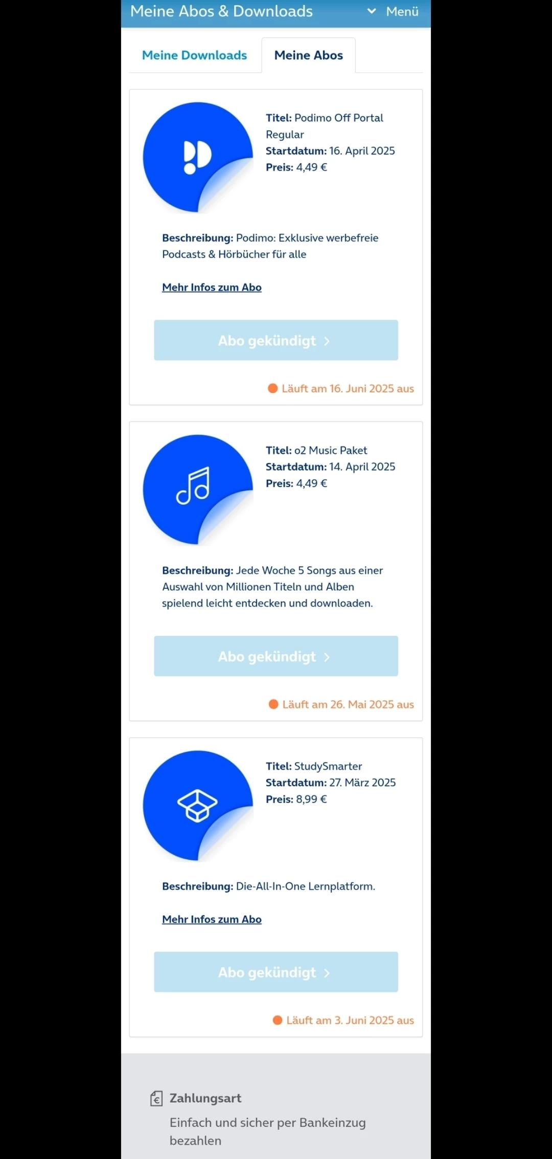 Schau mal im Play Store unter Abos nach oder im o2 Kundenportal in der Wallet