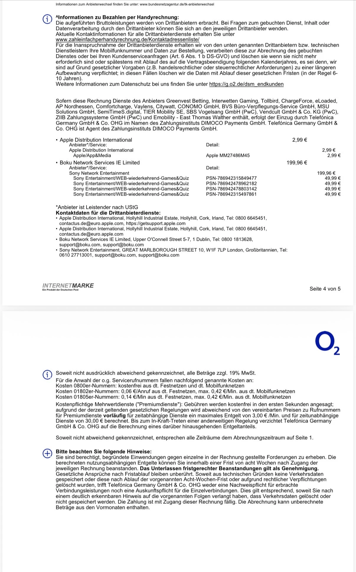 Es steht etwas von Boku Network Service Sony Entertainment/Web wiederkehrend Games&Quiz drauf und es wurde 4x 49,99€ was ist das und was kann ich jetzt dagegen tun? Habe was von Playstation gelesen aber sowas besitze ich nicht…