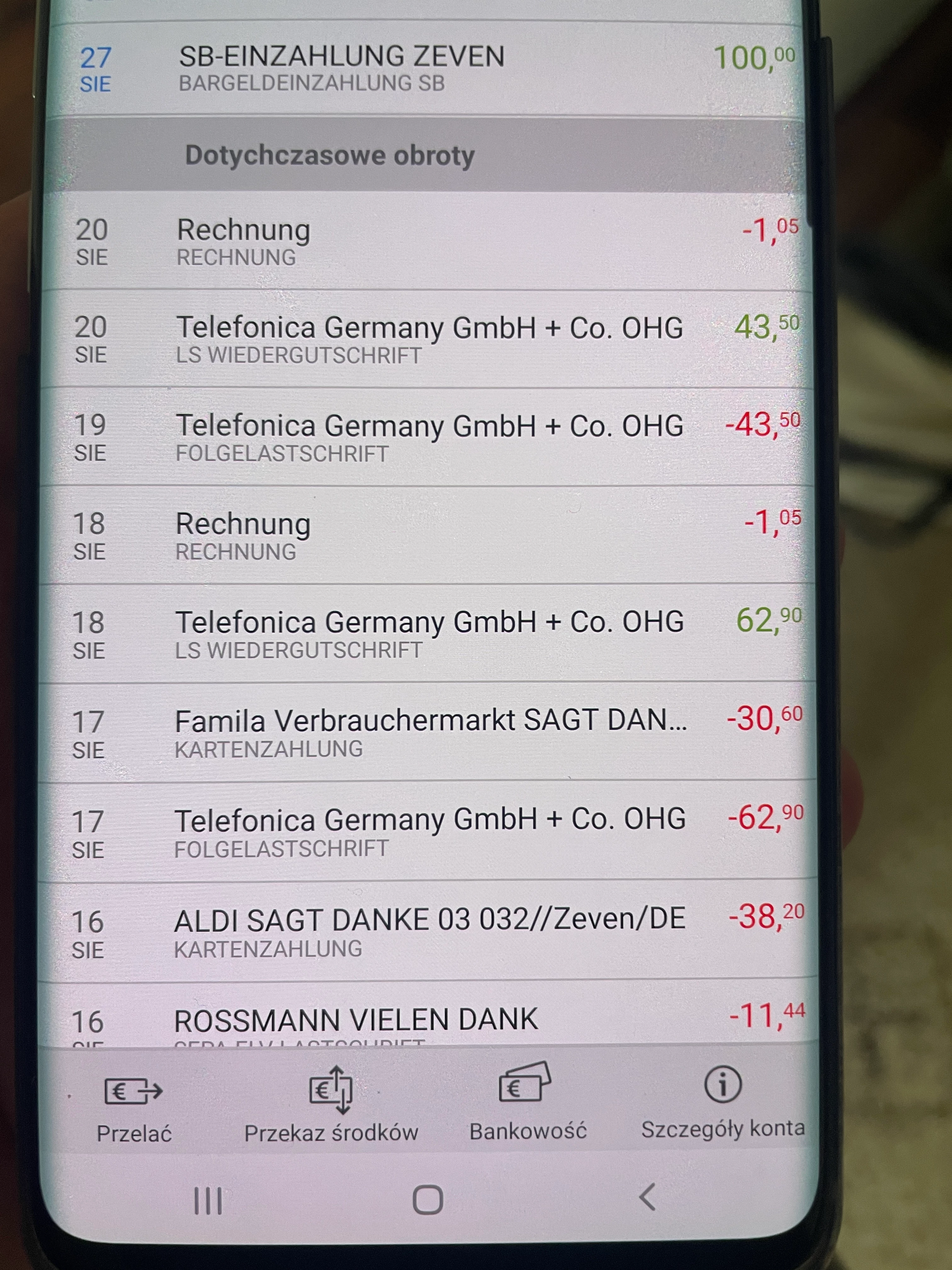 Von dem Konto meiner Mutter wurden aber 62.90€ abgezogen und wieder raufgebucht.