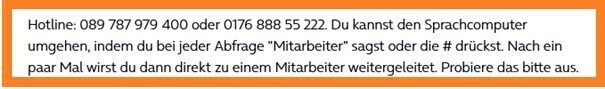 und bei den Computerfragen schweigen, dann wirst du zu einem Mitarbeiter weitergeleitet.