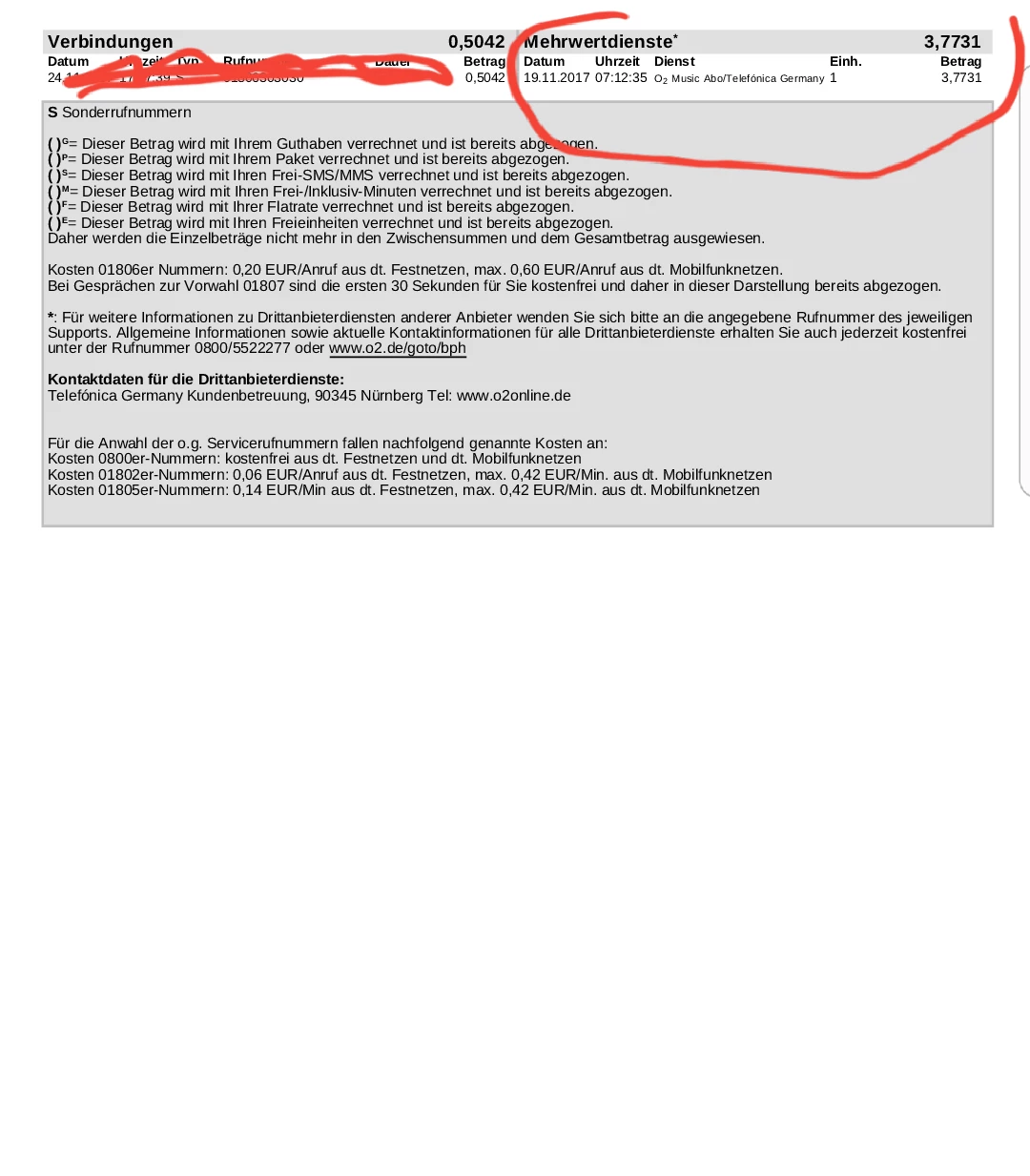 Hallo.Auf meiner Rechnung vom November und Dezember ist bei mir ein o2 Musik Abo aufgelistet und auch berechnet worden.Nur  habe ich kein o2 Music Abo abgeschlossen und Ausserdem wird das Abo auch garnicht angezeigt.Ich bitte deswegen um Rückerstattung .