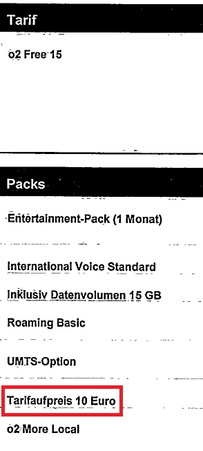 Tarifaufpreis O2 Free 15