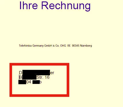 Wenn man aber meine Rechnungen betrachtet (auch anghängt) kann man erkennen (obwohl geschwärzt) diese Adresse nicht mit meinen Daten übereinstimmt!