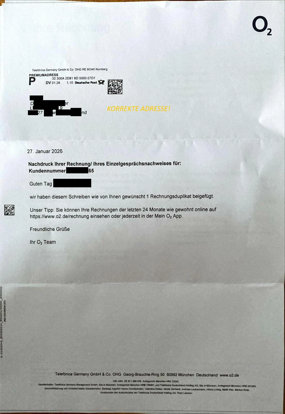 Und unter https://www.o2.de/rechnung/adresse sehe ich die korrekte Adresse (siehe Anhang!):