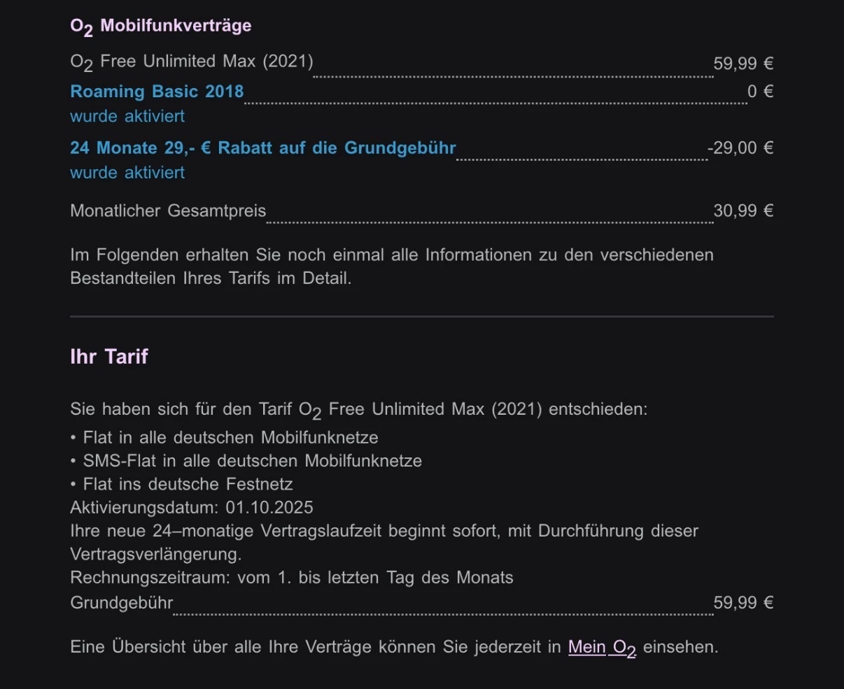 Der Vertrag ist jetzt ab dem 01.10 aktiv, also die Vertragsverlängerung. Bin aber schon vorher im gleichen Tarif gewesen.