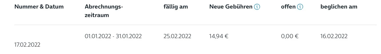 Ein bis zwei Wochen vorher habe ich es vor dem Fälligkeitsdatum überwiesen. Und das Bankkonto und natürlich auch der Verwendungszweck ist richtig gewesen.