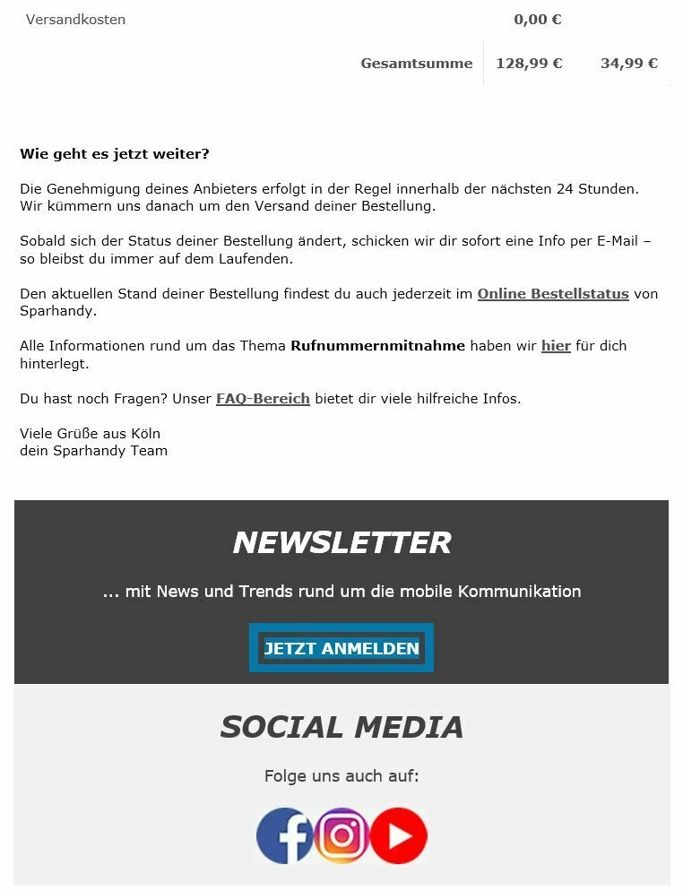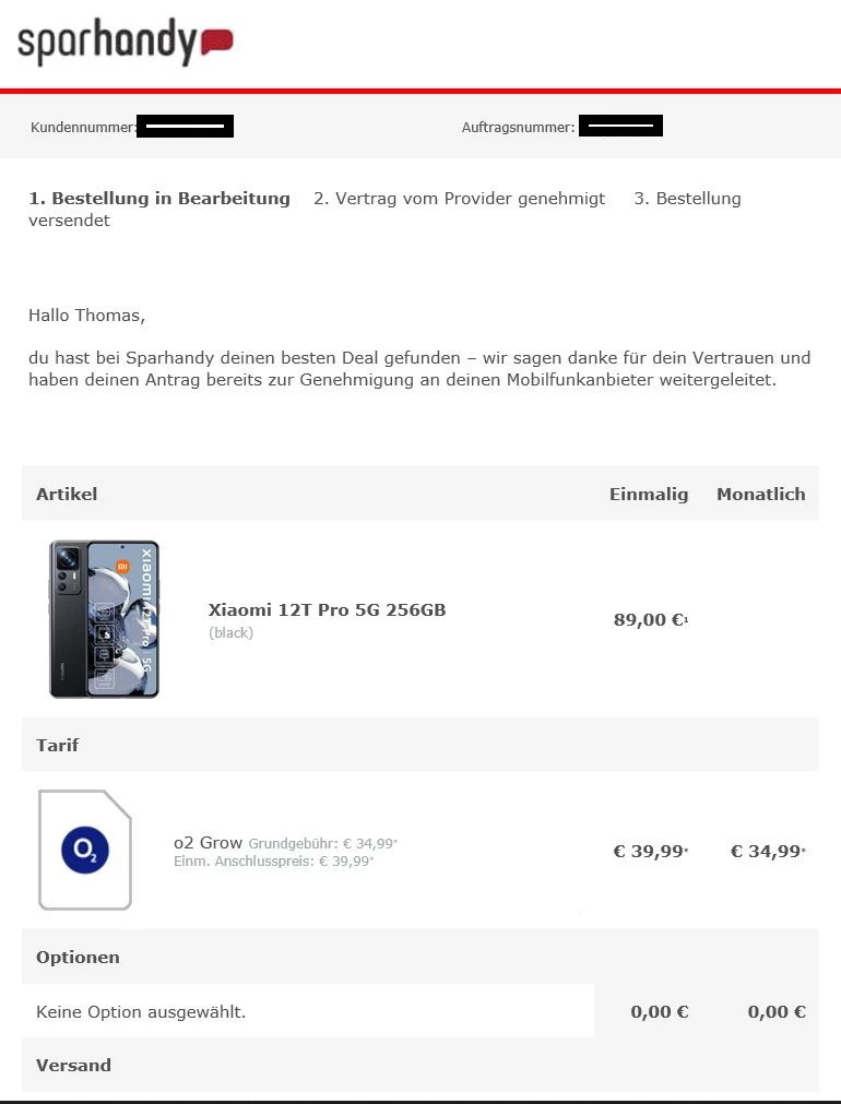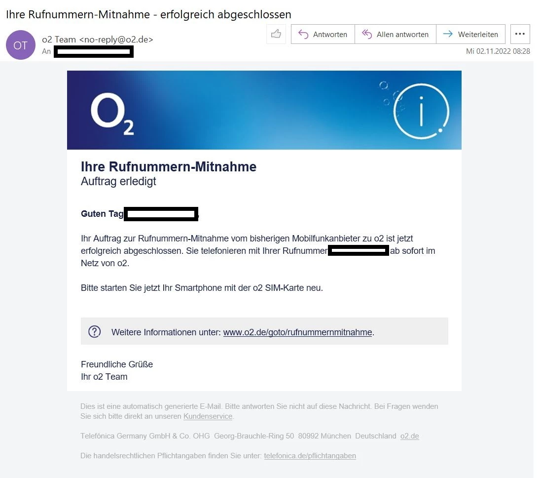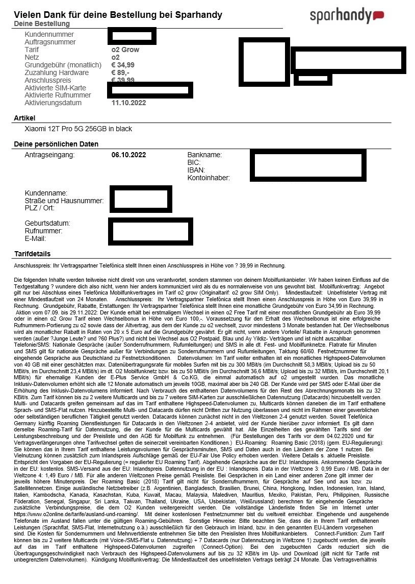 Ich hänge mal die Auftragsbestätigung und die Vertragsbestätigung jeweils mit dem Hinweis auf den Wechselbonus und die Bestätigung über die erfolgte Portierung an.