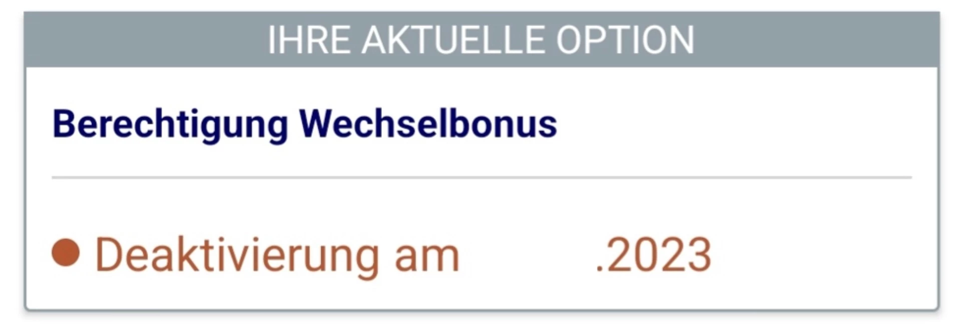 Wechselbonus nicht aktiviert