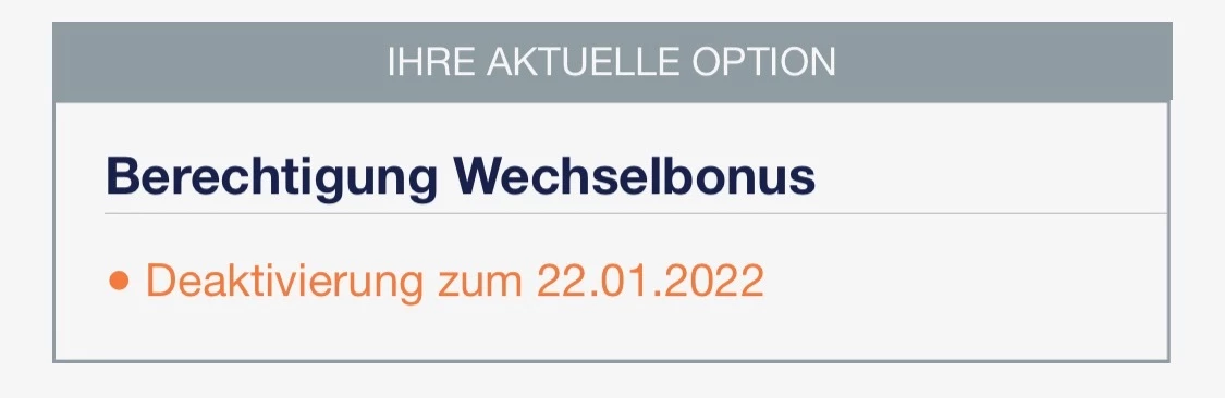 Der Wechselbonus ist hinterlegt, dass habe ich mir eben auch nochmal angeschaut.