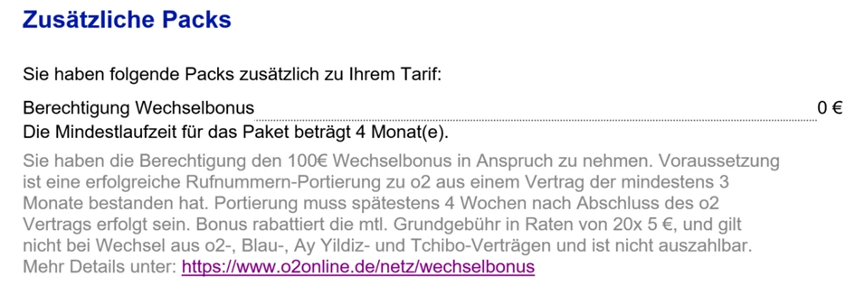 Ich bitte wiederholt darum, die 100€ Wechselbonus zu berücksichtigen und mir das entsprechend zu bestätigen.