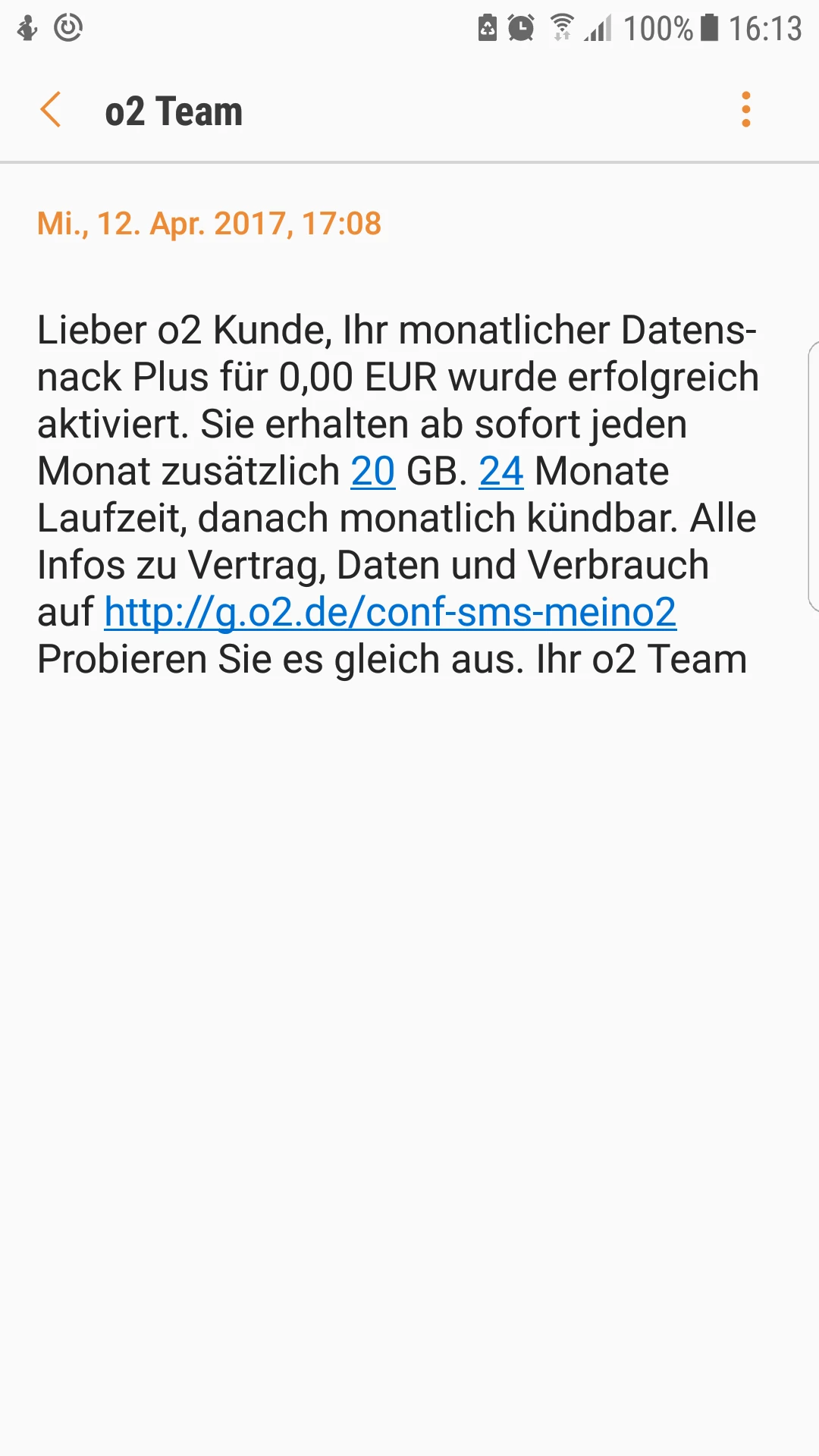 Am 16.05.2017 habe ich mich wieder telefonisch gemeldet. Und wieder bestätigt, wieder versprochen E-Mail und SMS senden. Weder E-Mail, noch SMS bekommen. Und bis dato nichts da: keine 20GB Datenvolumen.