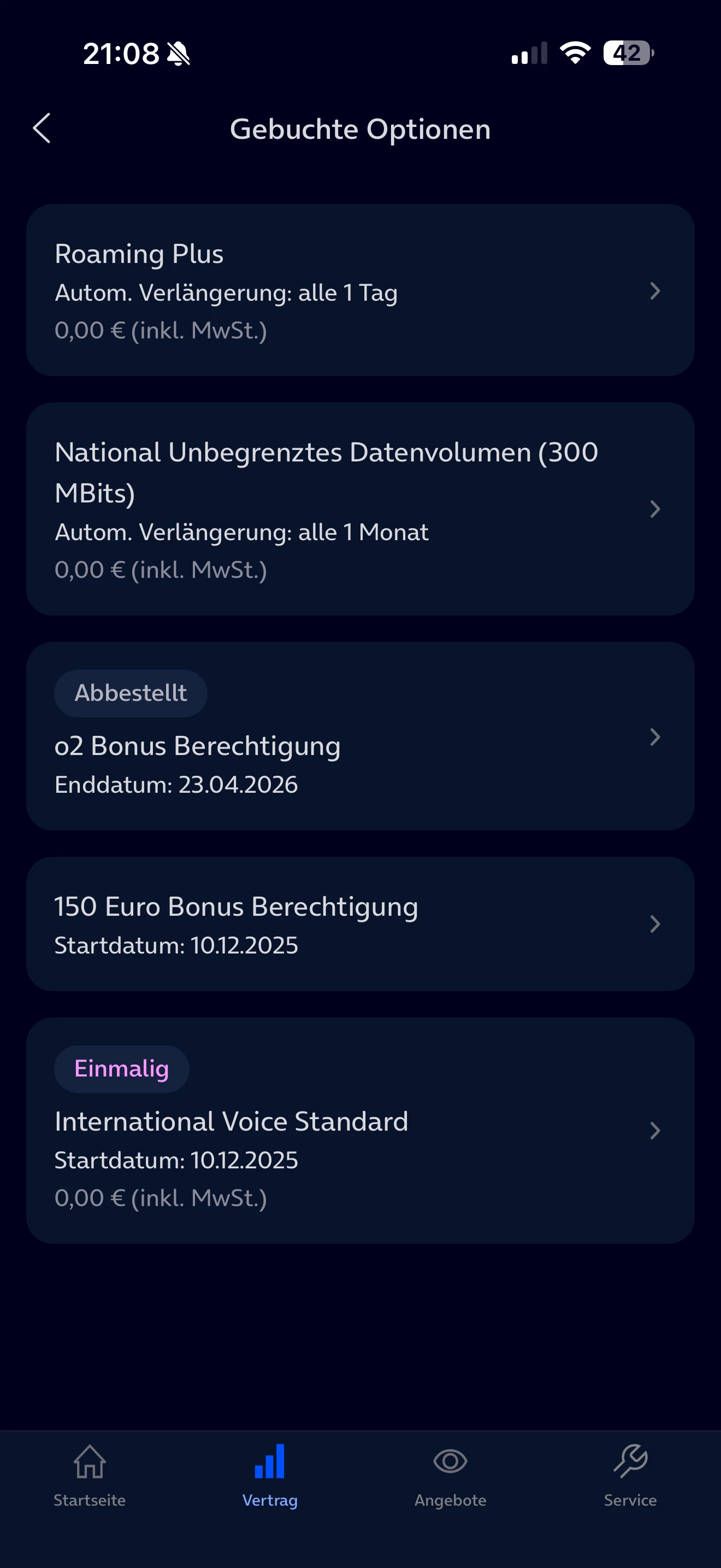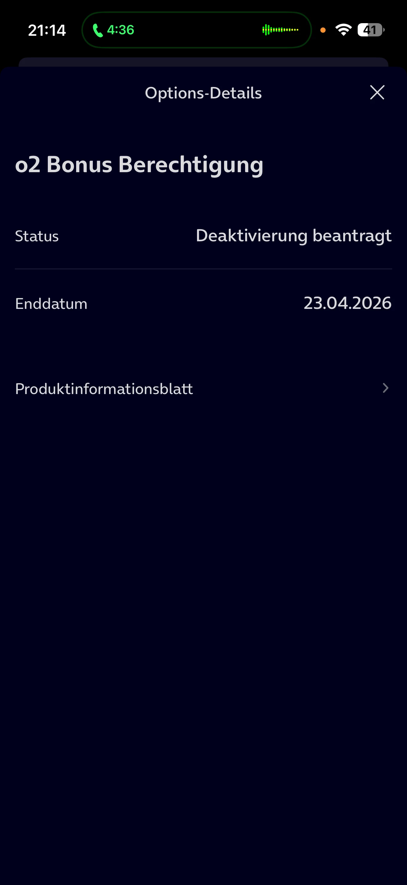 Den Bonus habe ich noch nicht bekommen und zusätzlich wird mir ein „o2 Bonus“ angezeigt mit dem Status „abbestellt“ – obwohl ich definitiv nichts abbestellt habe.