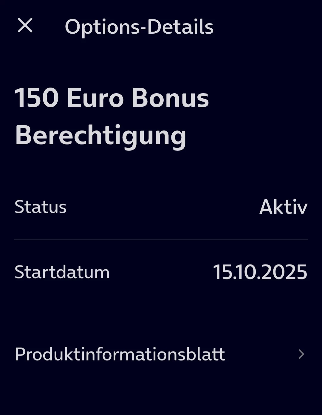 In der App steht unter Tarifdetails/Option-details, dass der Neukundenbonus von 150€ aktiv ist.