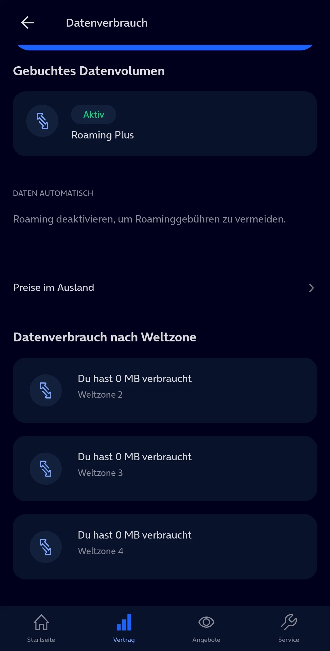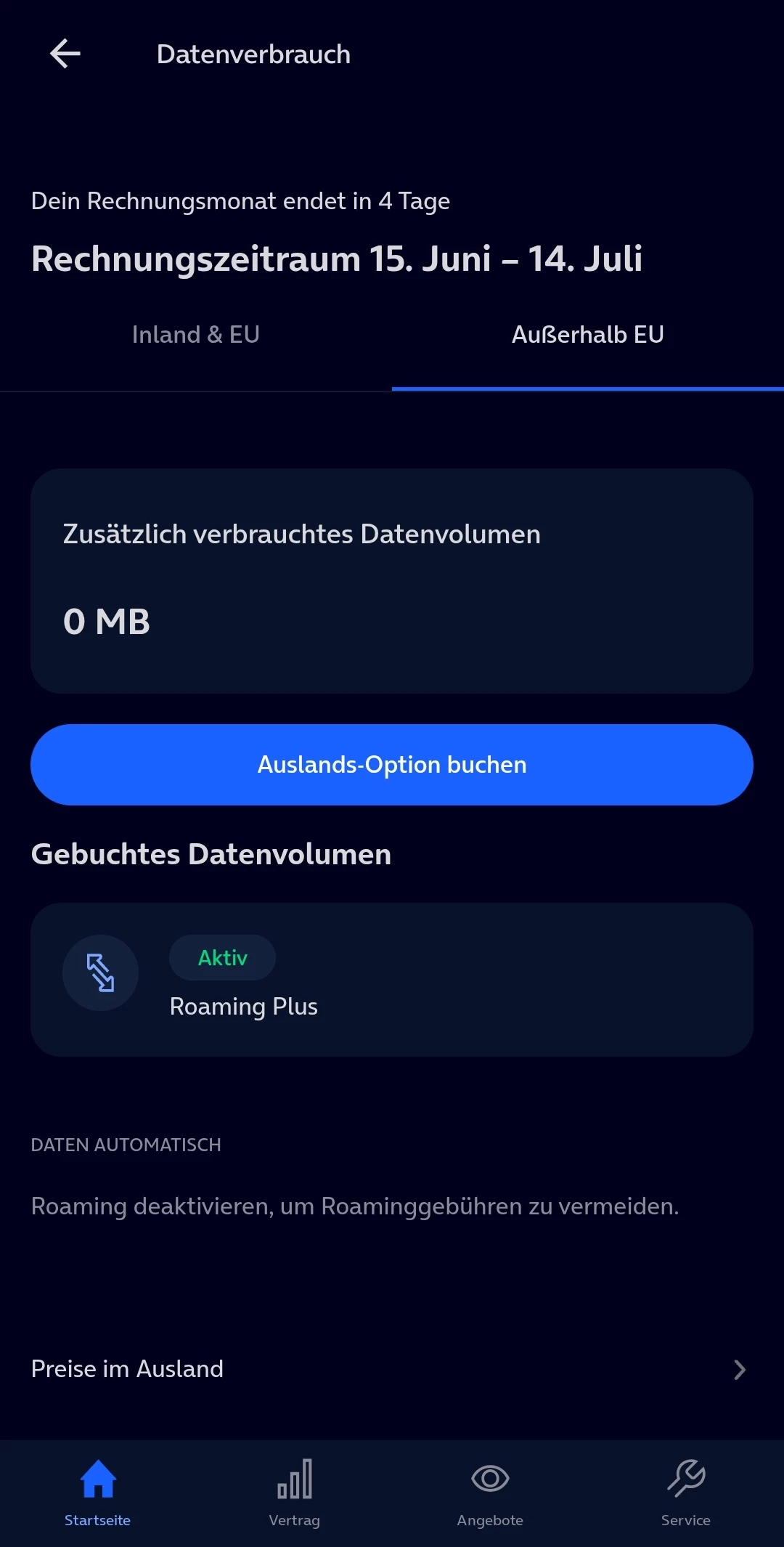 Da steht der Verbrauch von 161mb/300mb bei roaming plus.