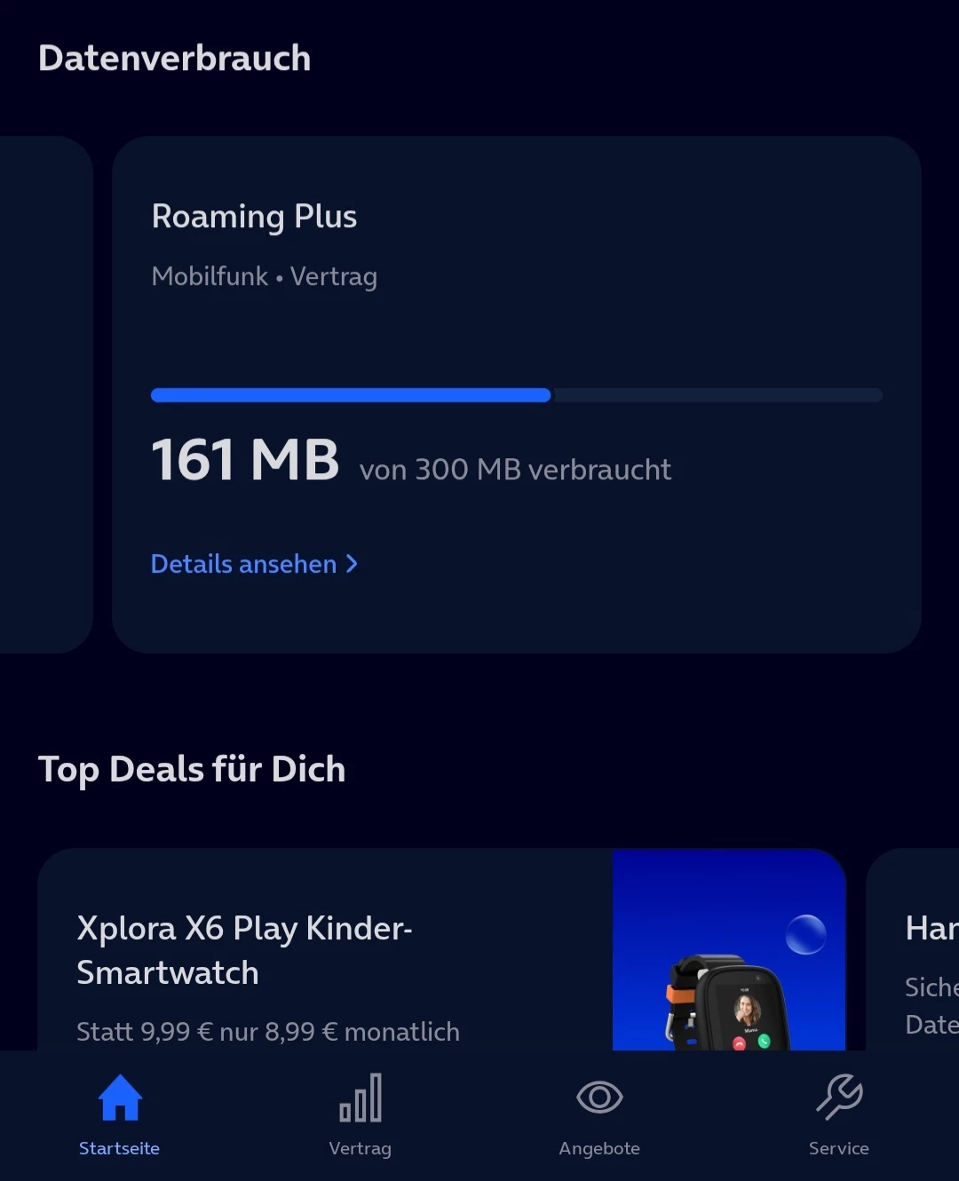 Warum habe ich den roaming plus Kram da mit drin? Und es wurde 161MB von 300MB Verbraucht, warum auch immer?
