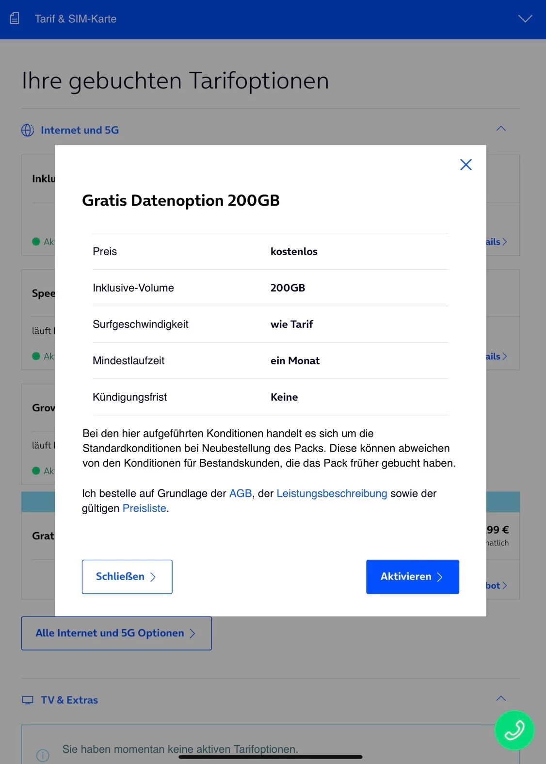 Ich habe bereits einen o2 Basic 30 Vertrag und habe vor kurzem einen o2 Home XL 500 Vertrag abgeschlossen. Zur Überbrückung der Zeit bis zur Aktivierung des Kabel-Anschlusses wird mir in der Mein o2-App die Option angeboten 200 GB gratis dazu zu buchen. Jedoch bekomme ich keine SMS zur Bestätigung der Buchung und auch kein zusätzliches Datenvolumen. In der Hotline wurde mir gesagt, dass der o2 basic 30 Vertrag nicht kompatibel mit diesem Angebot sei und die 200 GB nicht dazu gebucht werden können. Gibt es da eine Lösung für und warum sollte diese Option in der App angezeigt werden, wenn es nicht mit meinem Vertrag kompatibel ist?