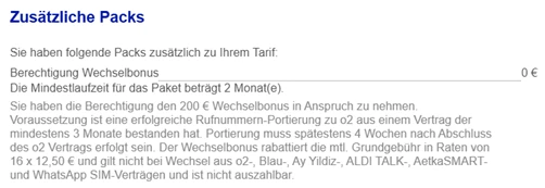 Steht die Berechtigung Wechselbonus in deiner Willkommen bei o2 E-Mail?