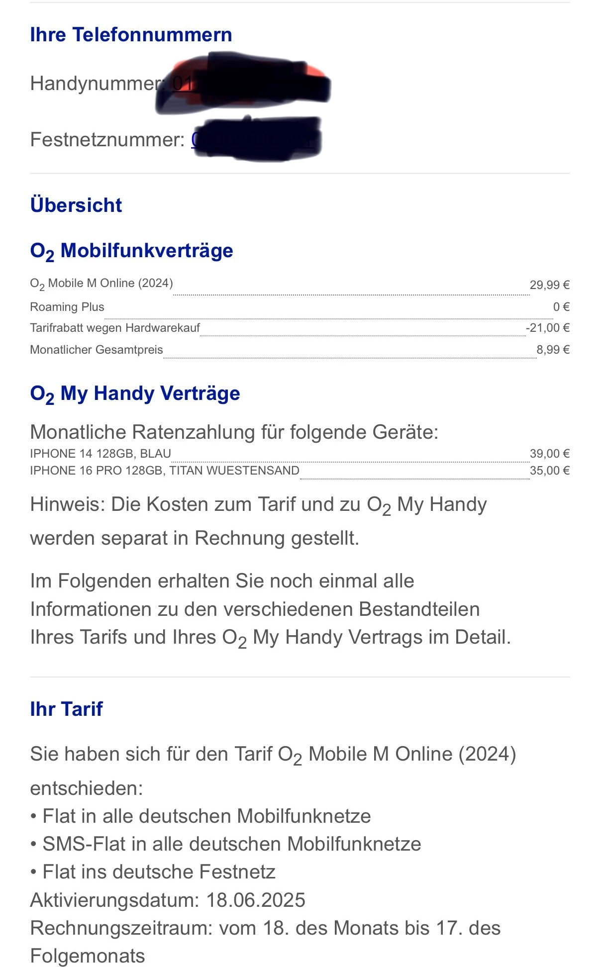 Hallo, leider habe ich telefonisch Nix erreicht da ich 3 mal aus der Leitung geflogen bin. Ich habe einen Vertrag mobil M inkl. iPhone und einen Partnervertrag mobil M inkl. iPhone für meine Mutter. Seit 2 Monaten wird mir in meiner App eine weitere Telefonnummer angezeigt welche mir unbekannt ist. Laut Info von o2 soll ich seit 14 Monaten für diese nummer bezahlen aber ich bezahle bissher immer nur meine eigne Hauptrufnummer + iPhone. Es muss also ein Systemfehler vorliegen. Wenn ich auf meine Rechnung schaue da ist dort eine Summe von fast 81€ offen die mich wundert da das neue iPhone von meiner Mutter keinen Anschlusspreis beinhalten sollte. Bin gerade so genervt da ich angebliche eine Mobil S flat laufen habe, die ich habe die abgeschlossen hat. Der junge Mann am Telefon wollte mir weiterhelfen doch leider bin ich aus der Leitung geflogen :(. Hilfe