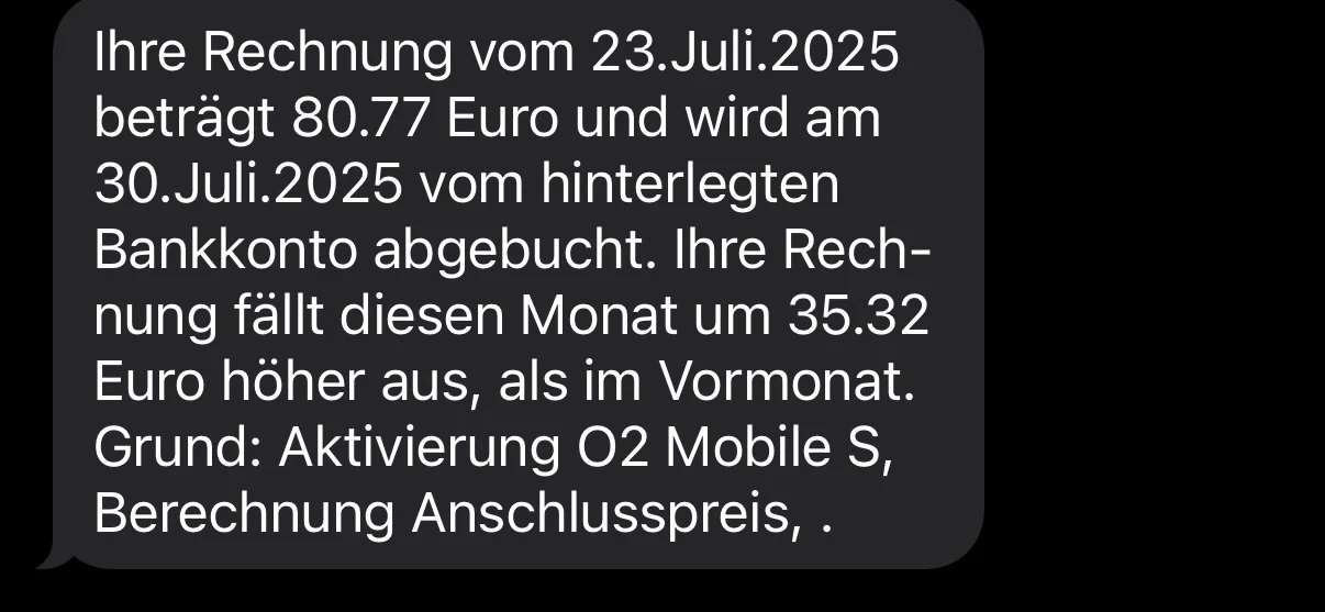 Schau mal, deshalb ist meine Rechnung so hoch. Ja der Kundendienst sagt mir 14 Monate und zeitgleich bekomme ich diese SMS von o2 :( ich habe kein o2 Mobile S Vertrag und muss dafür bezahlen. Komisch denn abgeschlossen habe ich nichts.