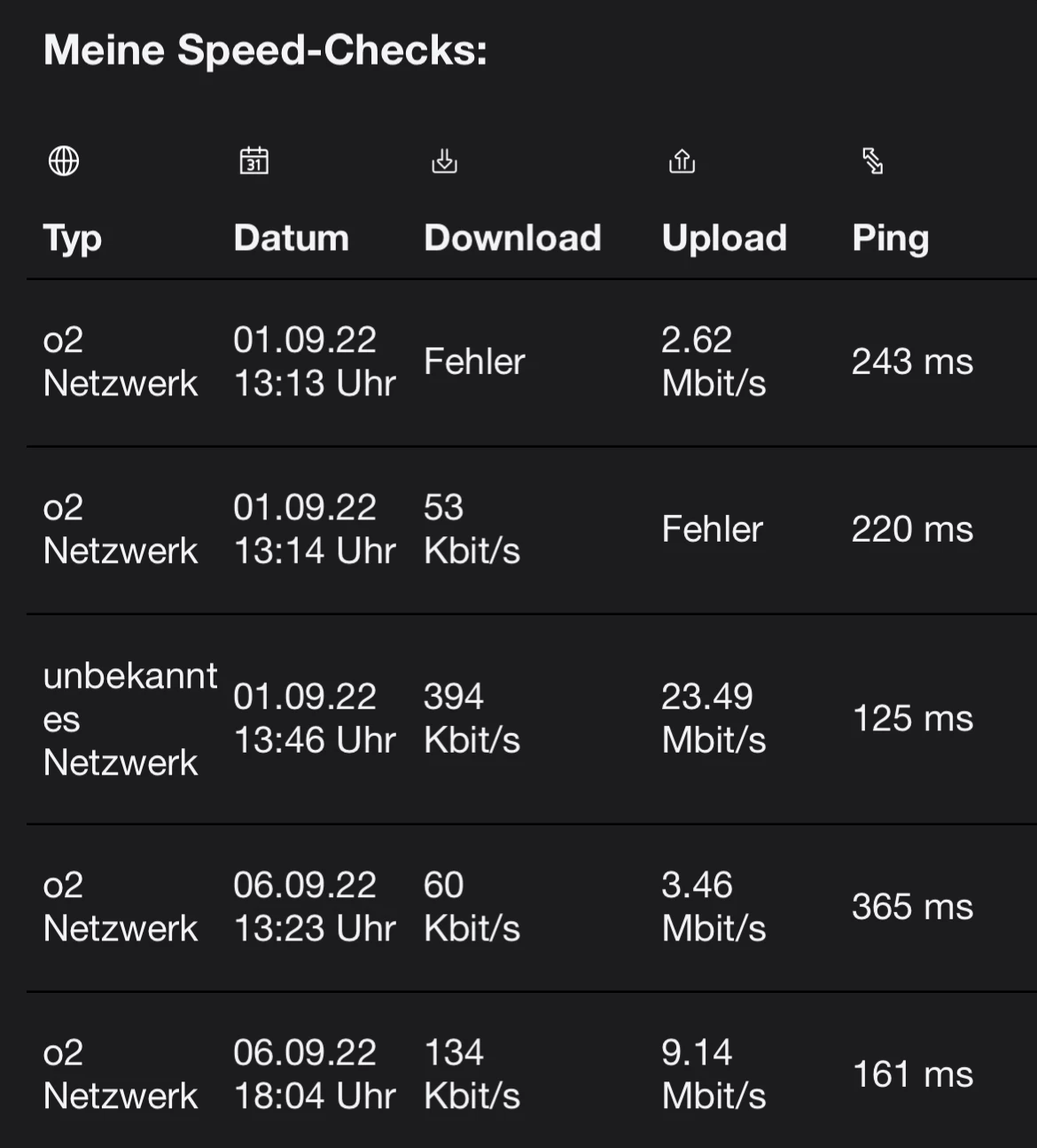 vor mehreren Wochen ist mir bereits aufgefallen, dass ich in Raum Hilden 40721 kein Mobiles Internet nutzen kann. Mehrmals habe ich das Problem bereits gemeldet, aber keine Besserung. Man kann nicht mal Musik Streamen von Unterwegs. Speedtest wenn sie mal starten haben immer Pings von weit über 1000ms und Geschwindigkeiten im 0,X Bereich. Es ist auch keine geplante Wartung gemeldet.