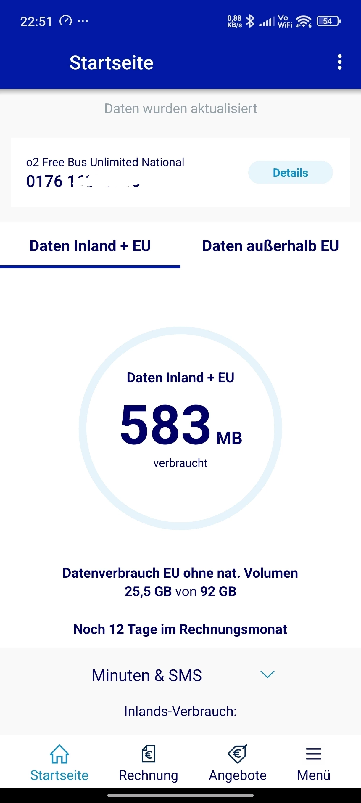 Was mich so verunsichert hat ist, dass sich der Volumenzähler mitten im Rechnungsmonat zurückgesetzt hat. Der Traffic der Hauptkarte wird jetzt nicht mehr gezählt.