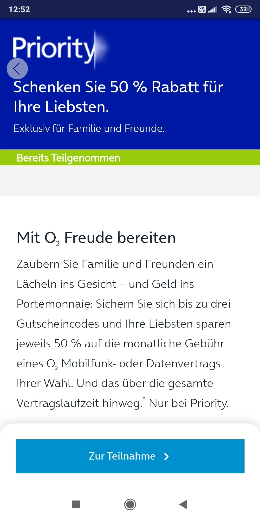 Wenn deine Partnerin o2 Kundin ist, empfehle ich auch den Priority Vorteil..