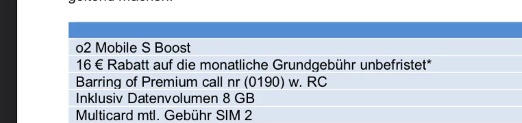 • Dasselbe zur Connect-Option gilt für deinen gewünschten Tarif “o2 Mobile S Boost” für deine Rufnummer -930 am Ende. ​​​​(…)