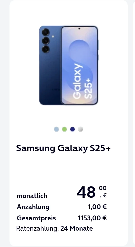 der letzte Kündigungstag vor automatischer Verlängerung war heute 04.06.25. Wäre es möglich für meine Partnerkarte noch ein Angebot mit einem Handy reinzuholen, oder wäre dies zu spät? Ich würde mir nämlich gerne ein Samsung Galaxy S25+ 256GB in Navy holen. Auf meiner Partnerkarte ist momentan ein Treuebonus von 10GB extra drauf, jedoch nur Internet ohne Handy.