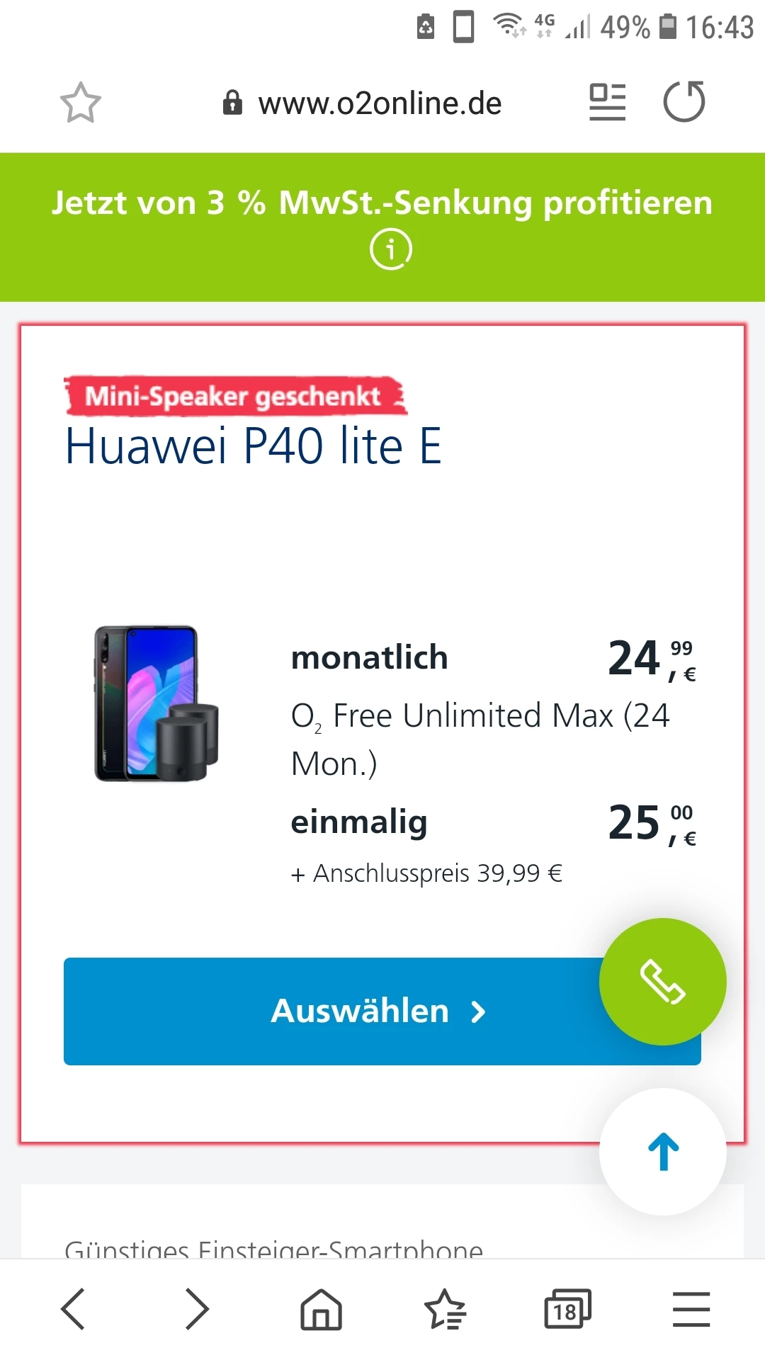 Ich bin seit vorgestern bereits am überlegen, ob ich das Angebot (Huawei P40 lite E (24 Mon.) + O2 Free Unlimited Max (24 Mon.)) auf der Homepage abschließen soll, was eig. kein Grund zur Überlegung sein brauchte.