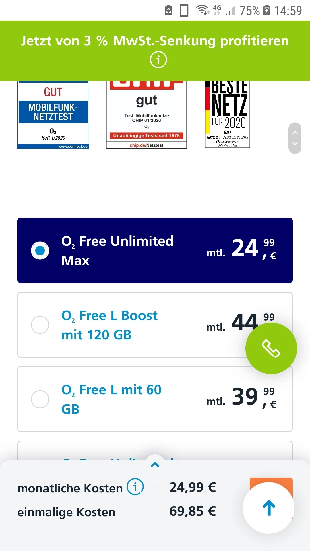 Aber den Tarif “o2 Free Unlimited Max” bieten wir aktuell ohne Handy nur zum Standardpreis von 49,99 EUR an.