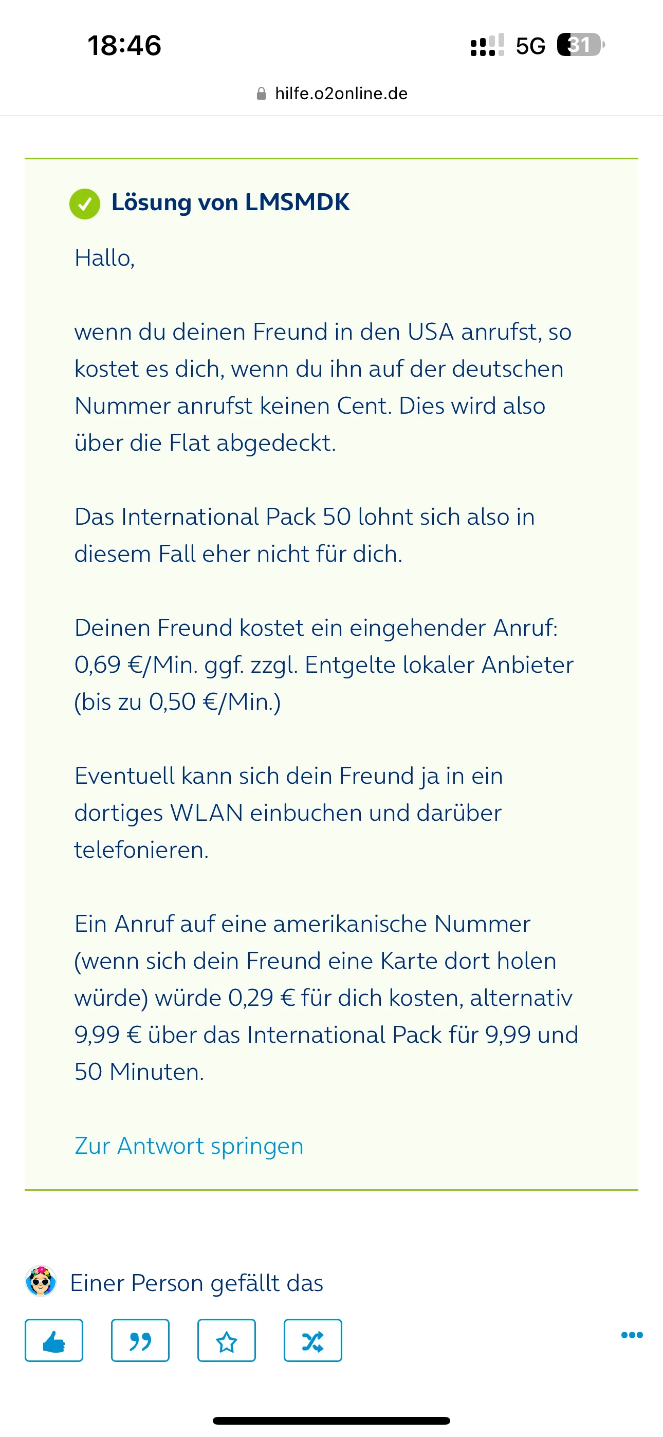 Wenn ich von meinem Handy o2 Tarif ohne zusätzliche Optionen, eine deutsche Nummer anrufe, die sich im Moment in den USA befindet . Ist das ein Auslandsgespräch ?