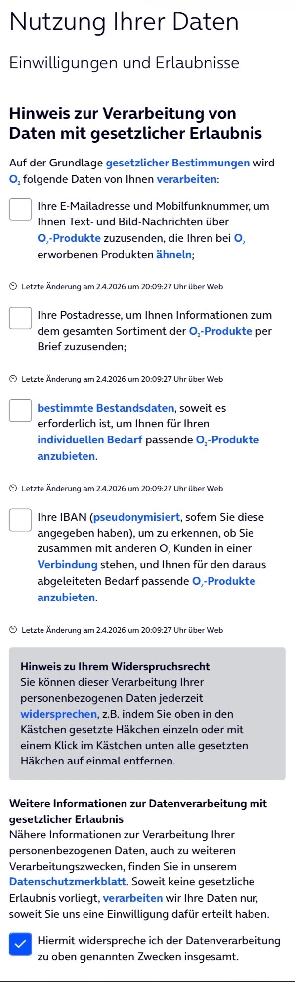 am 02.04.2026 eingestellt, leider dauert es etwas bis es bei o2 ankommt bzw. umgesetzt wird.