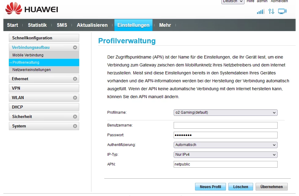 der HUAWEI hat Netpublic als APN? Der bekommt ein öffentliche IP?