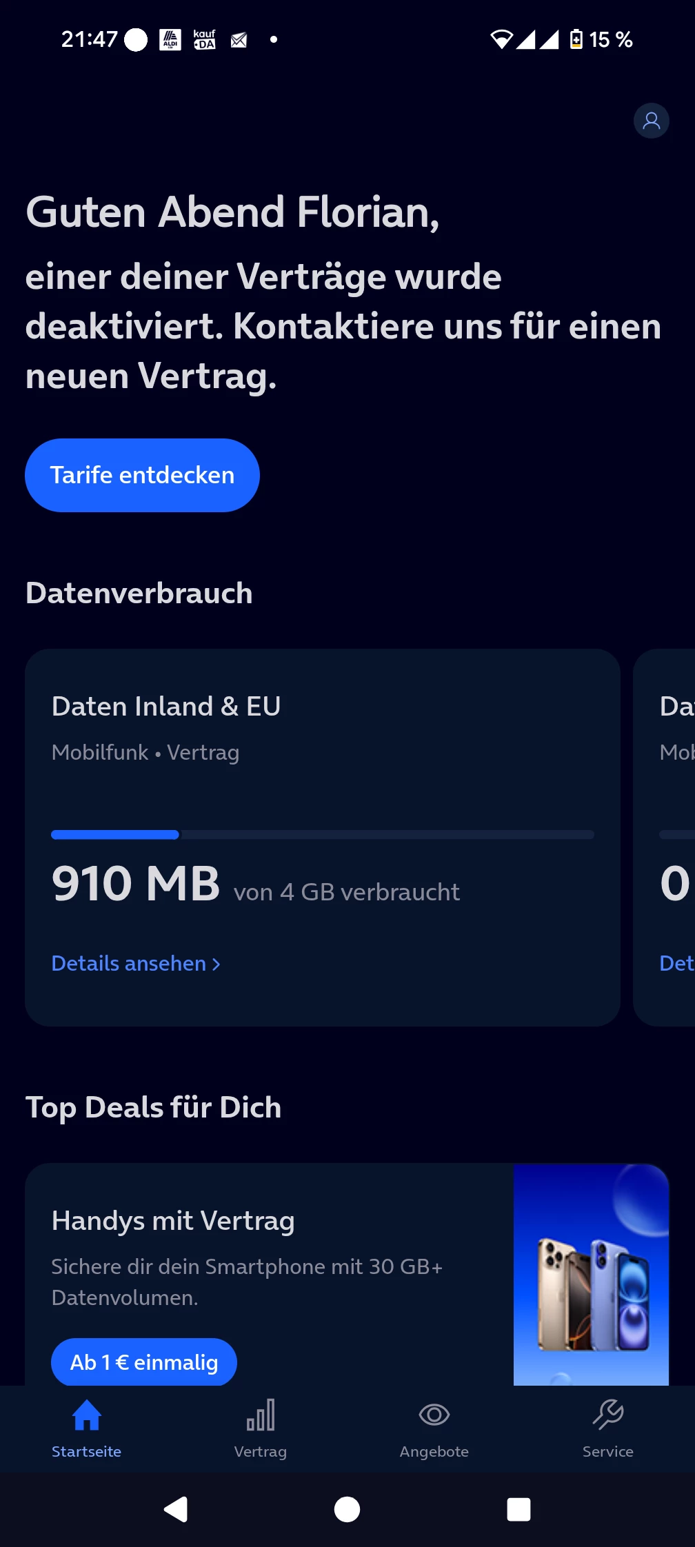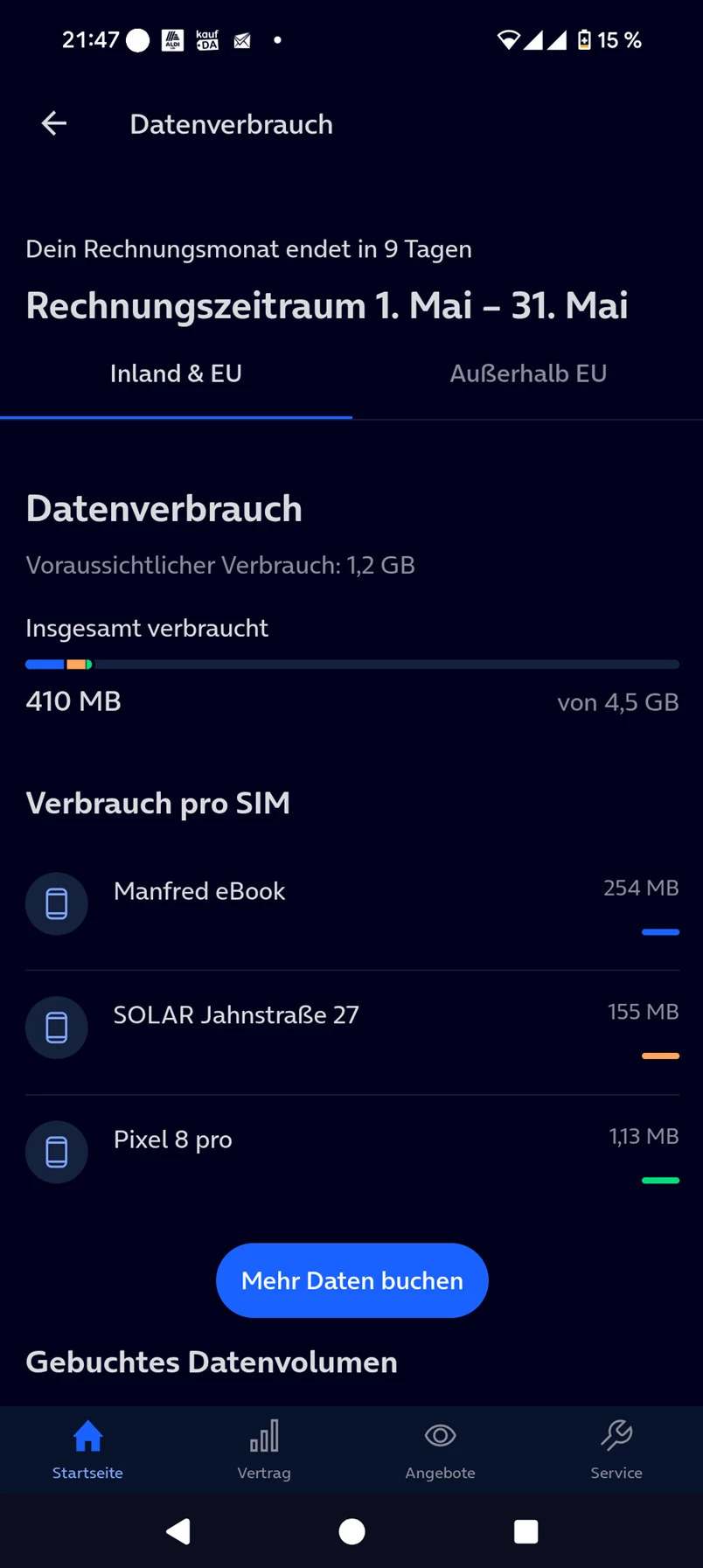 Die Anzeige in der App für verbrauchtes Datenvolumen (910MB) stimmt nicht mit dem Verbrauch der Simkarten (410MB) überein.