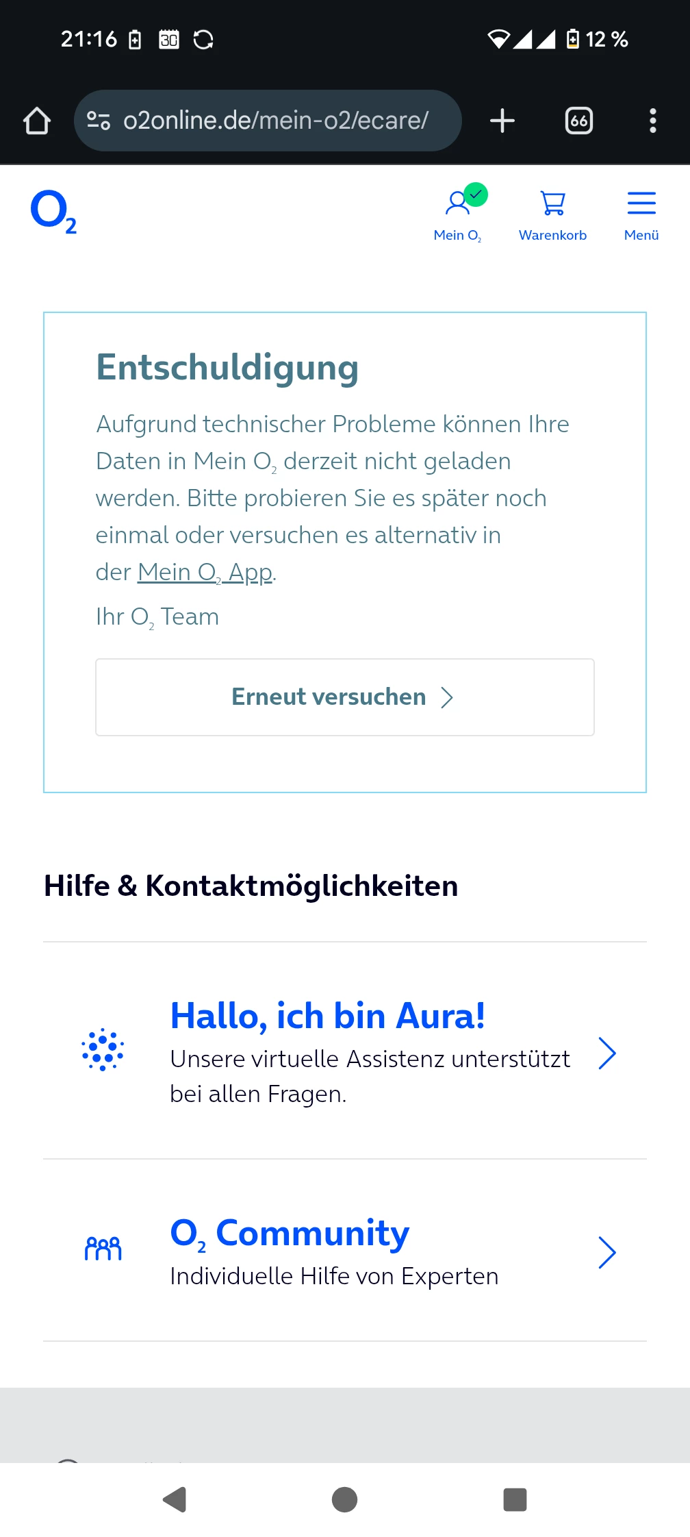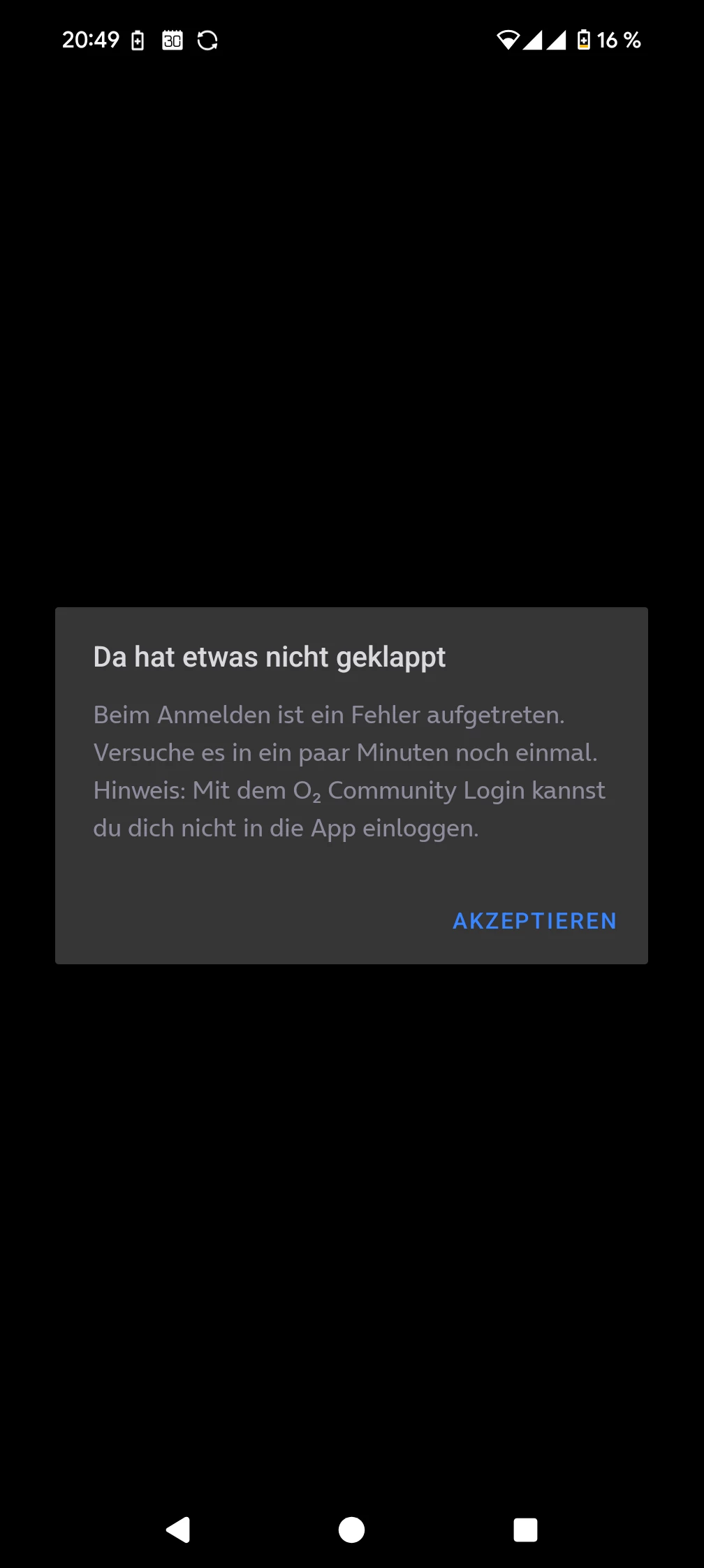 Super, dass du es auf einem anderen Gerät ausprobiert hast. Bei dir am Handy kommt die Meldung “Da hat etwas nicht geklappt” also direkt wenn du unsere Mein o2 App öffnest und du kommst über keinem Weg zum Login?