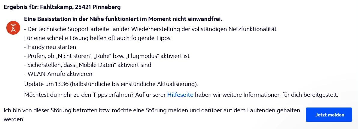Steht doch da eine Basisstation in der Nähe funktioniert im Moment nicht einwandfrei