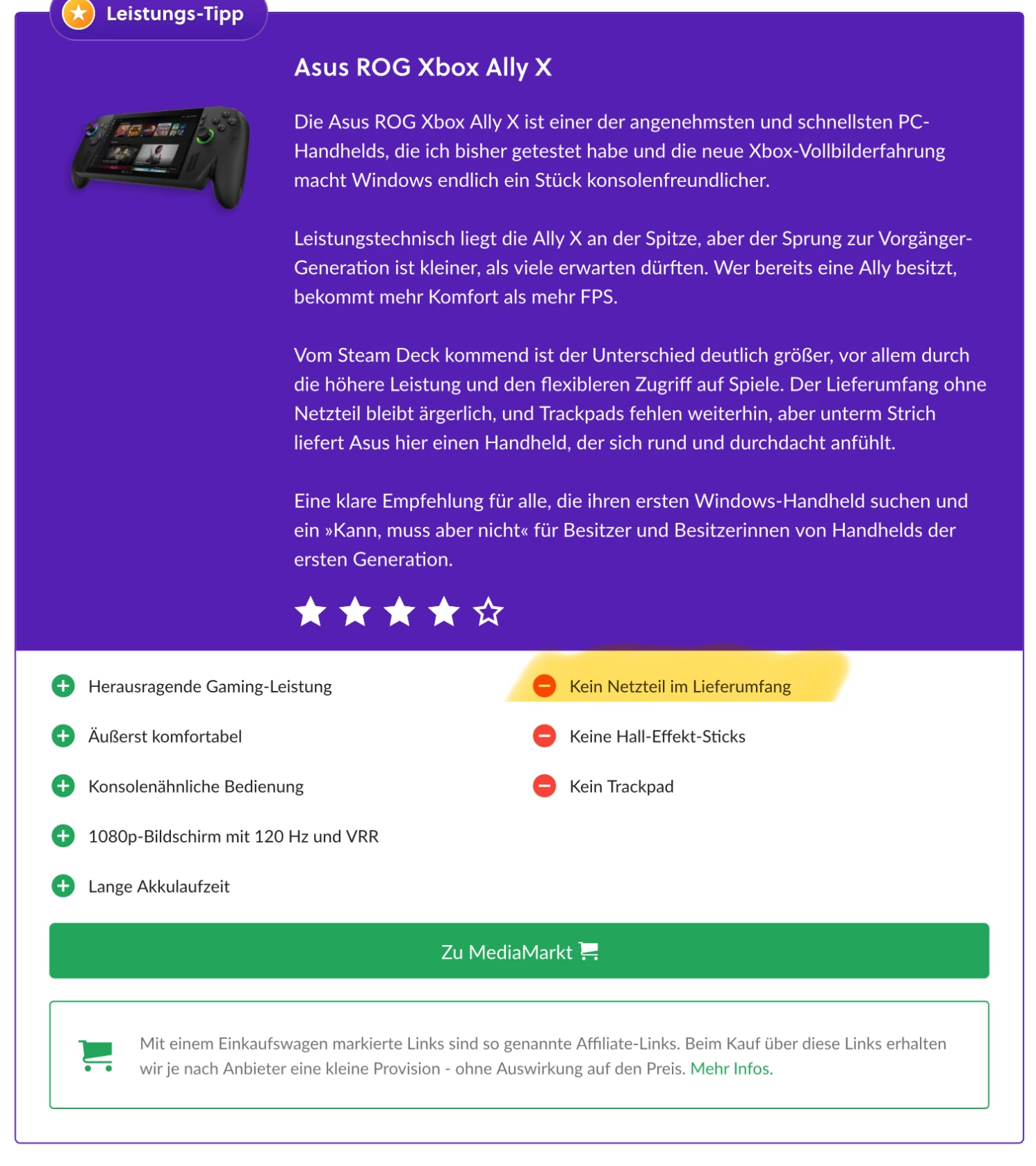 Asus Rog Xbox Ally Netzteil Fehlt