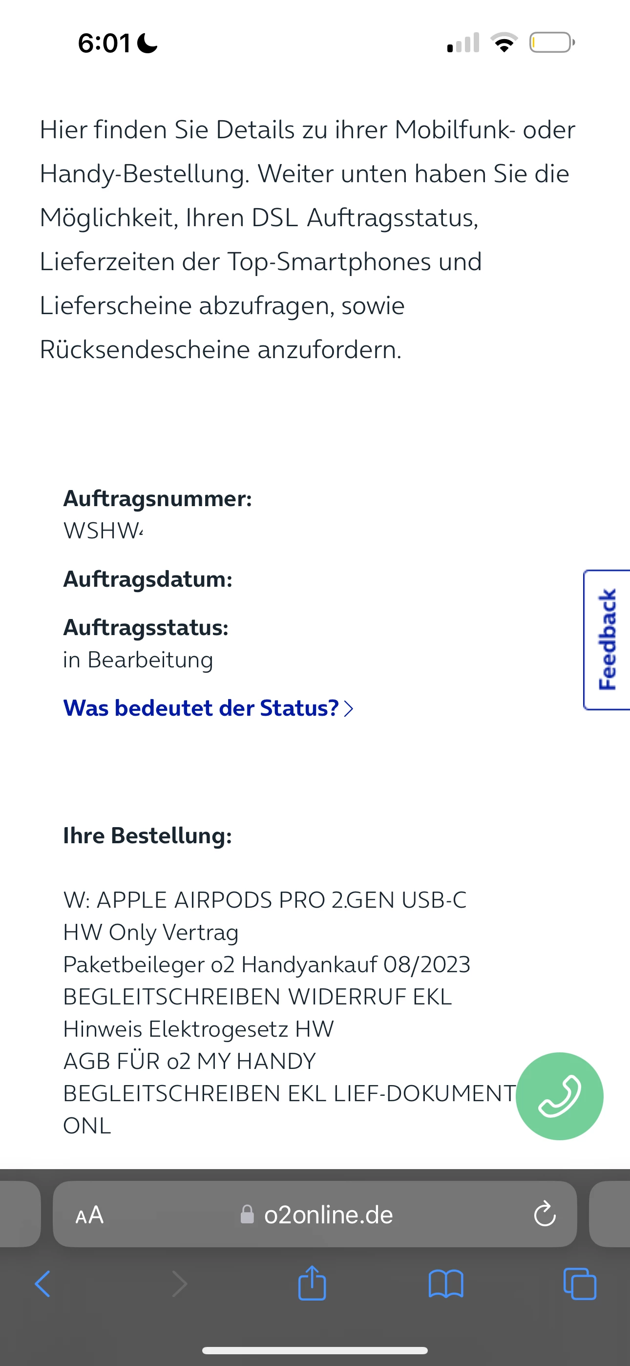Zu meiner Überraschung wurden bei der Annahme der Bestellung (nachdem ich eine Anzahlung von 223 € geleistet hatte) nur die Airpods aufgeführt, was mir sehr seltsam vorkam, und als ich nach der Bestellverfolgung suchte, sah ich auch, dass nur die Airpods in Bearbeitung waren, obwohl es im Angebot anders steht.