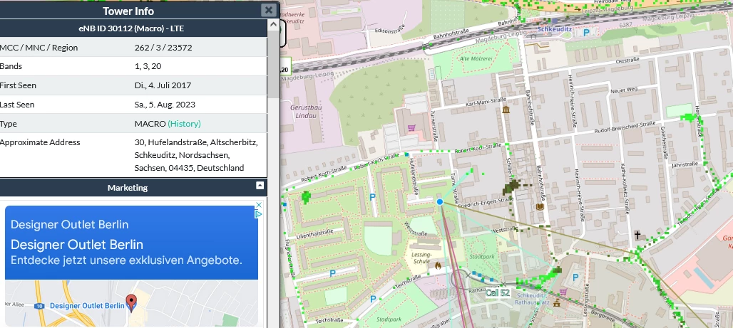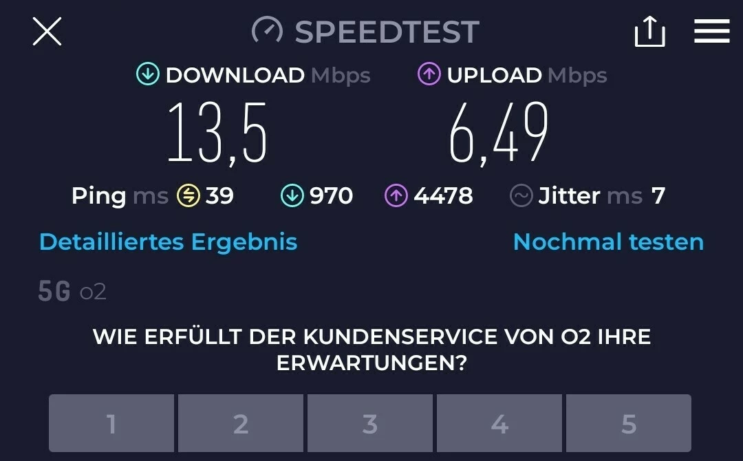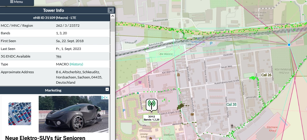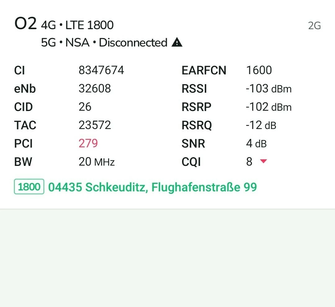 Obwohl bei deiner Mutter in der Heinrich-Heine-Str. die Station wirklich super aussieht, sei es bei den LTE- sowies 5G-Daten, kein erhöhtes Volumen oder sonstiges.