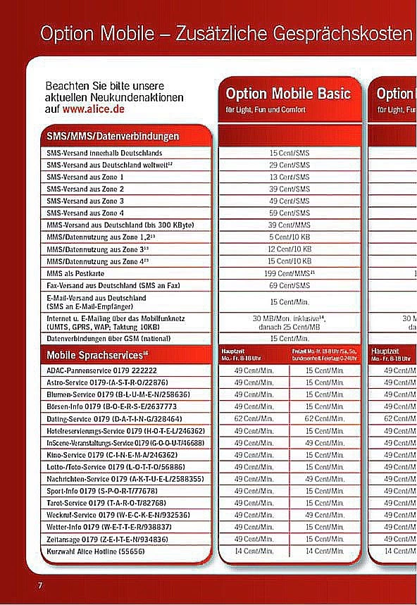 Ich möchte die aktuellen Nutzungsbedingungen für den O2-Tarif Option Mobile Basic wissen:, Freiminuten, Frei-SMS, Datenvolumen, den ich habe, der aber auf der Website nicht zu finden ist.