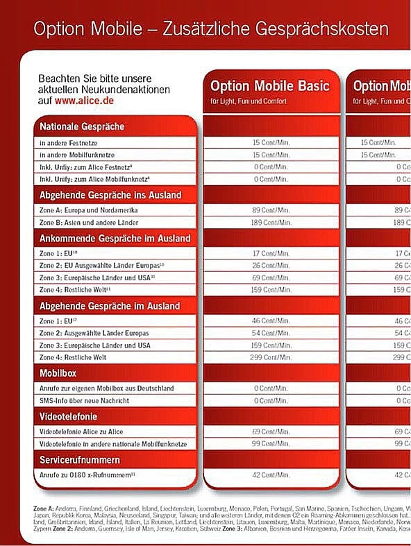 Bedingungen für O2-Tarif Option Mobile Basic, Freiminuten, Frei-SMS, Datenvolumen, Stand 2026