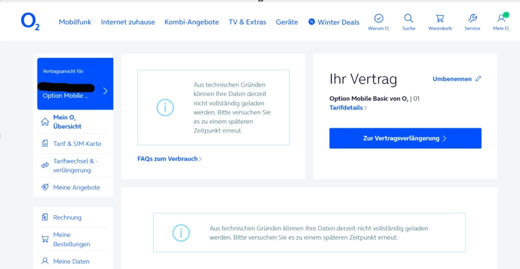 O2 bekommt es nicht hin die alten Vertragsbedinmgungen abzubilden.
