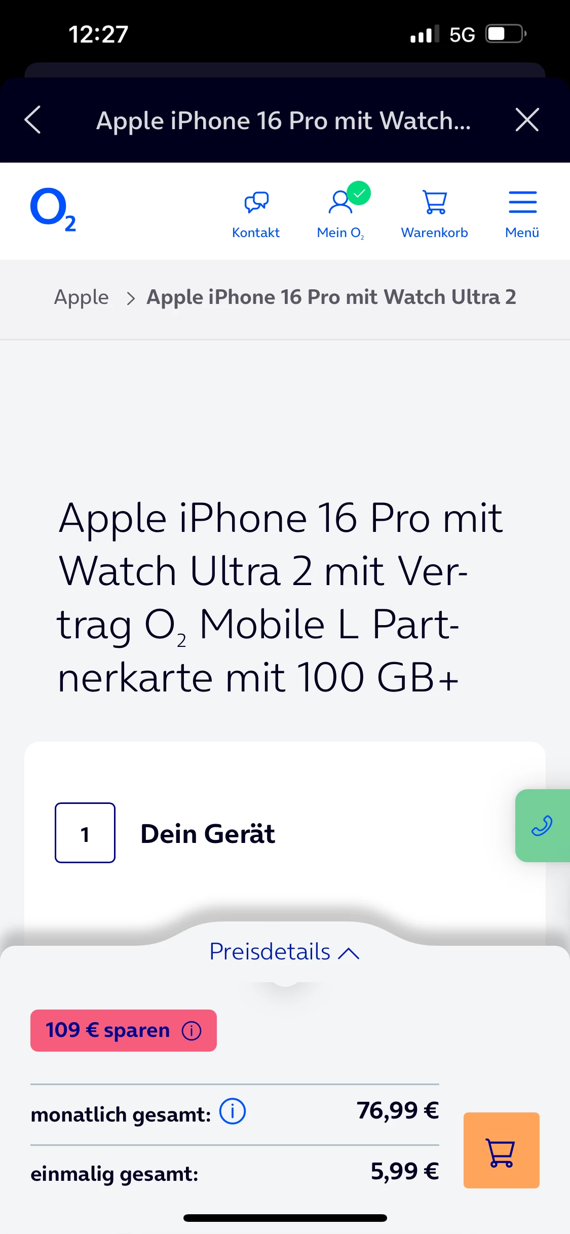 Ich wollte eine Vertragsverlängerung machen mit dem Uphone pro Max und der Watch Ultra.