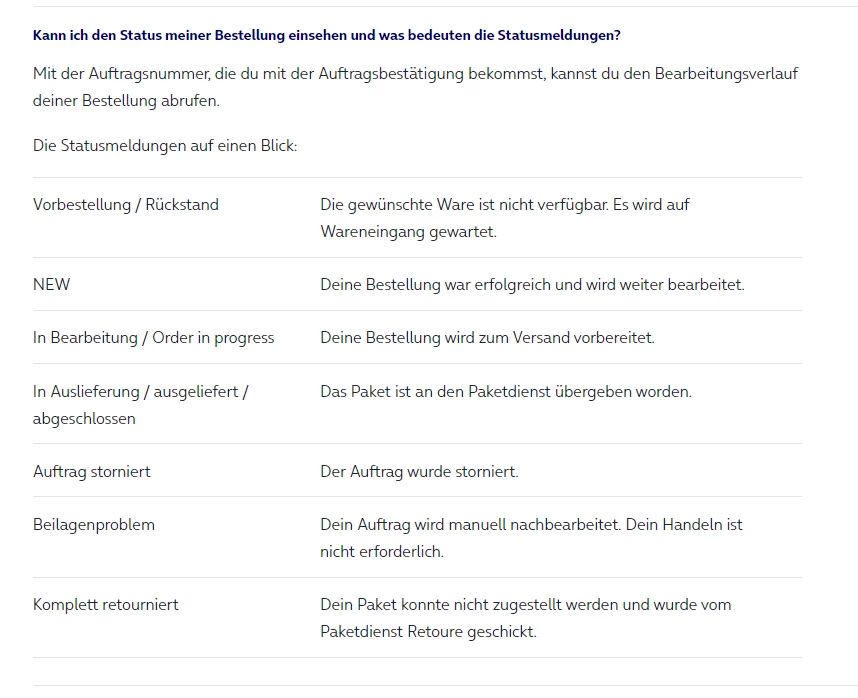 Was steht im Bestellstatus?