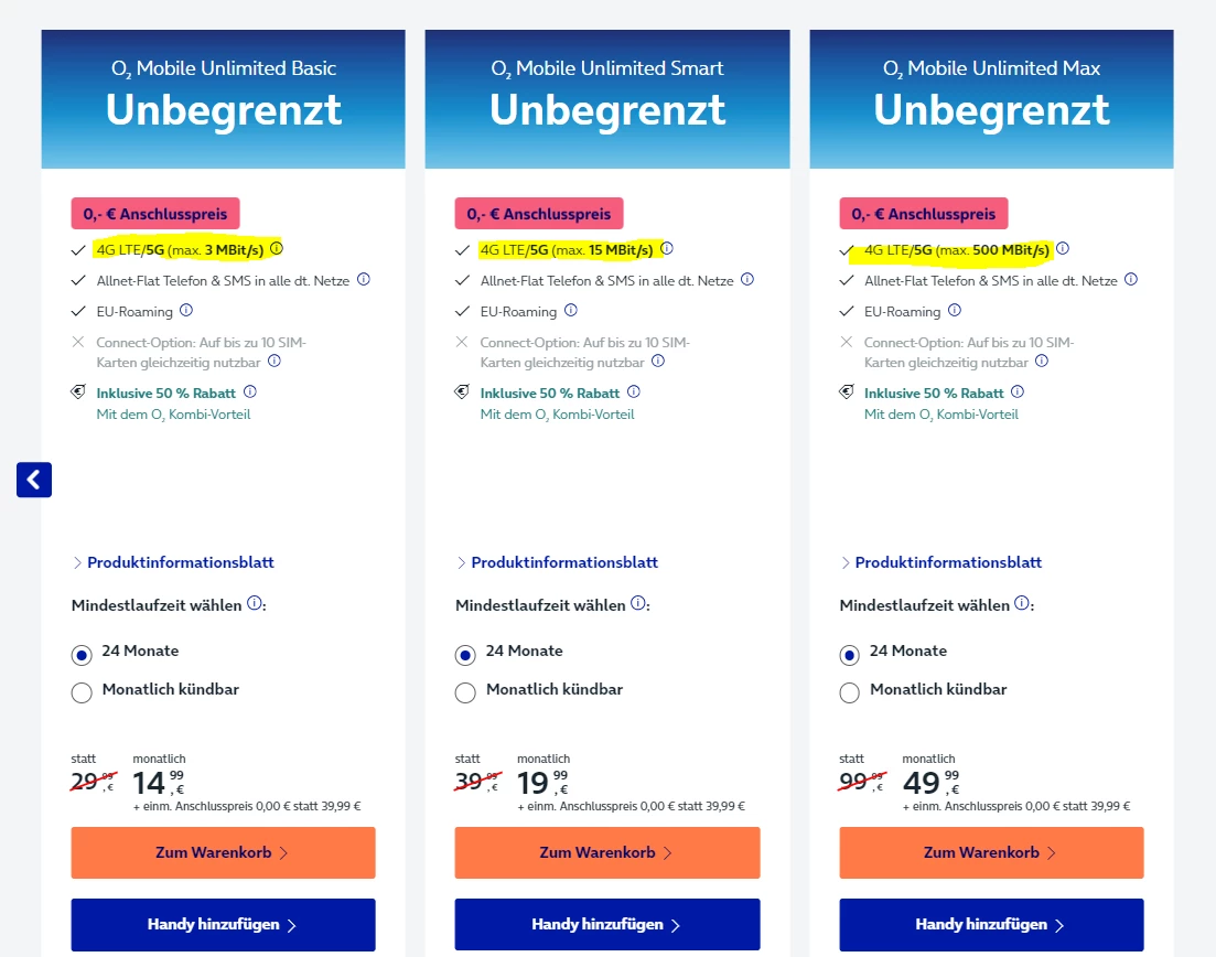 Da wäre aber wieder der o2 Unlimited Smart bei dem “neu abzuschließenden” Vertrag ausgenommen.
