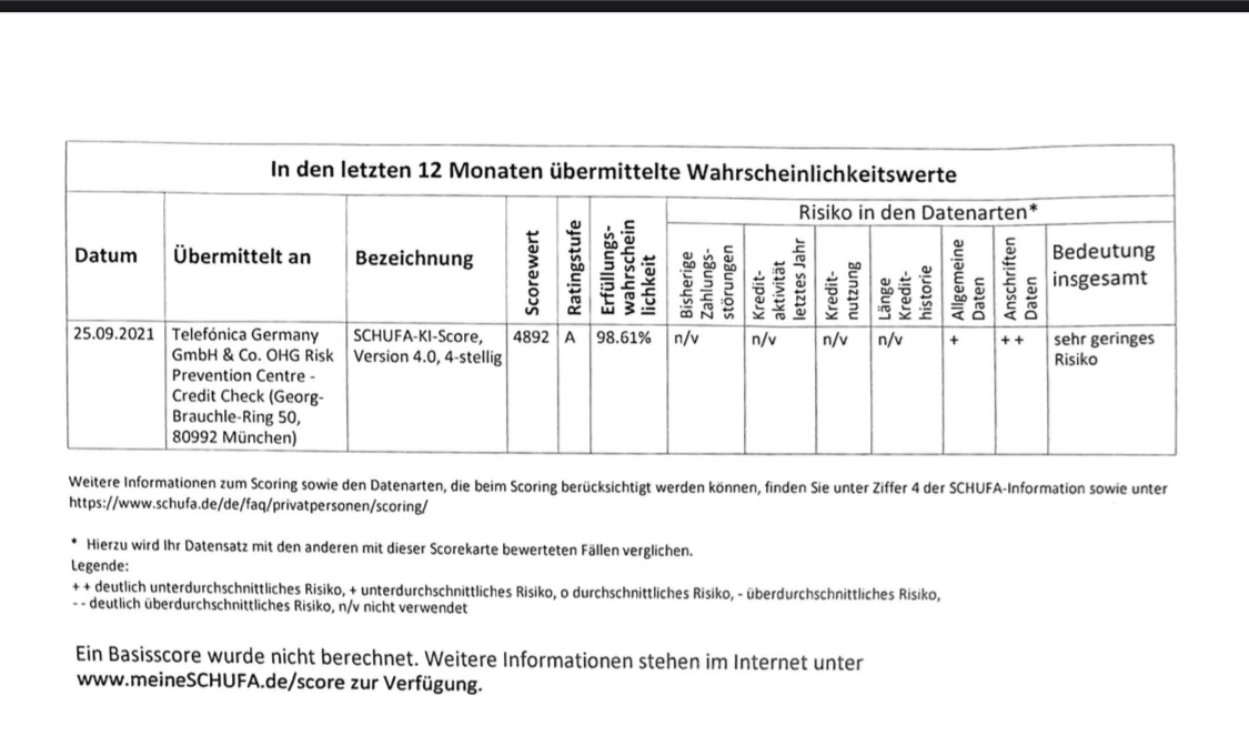 Bitte wende dich doch einmal an die Adresse, die auf dem Dokument angegeben ist. Möglicherweise kann man dir dort eine bessere Auskunft geben. Wir haben hier leider keine Einsicht in die Bonitätsdaten.
